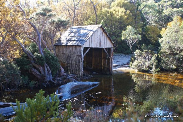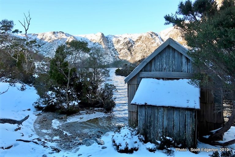 The Boat Shed at Crater Lake was built mainly of locally sourced native pine.  It has sat on the shore of Crater Lake since 1940.  Recreational boating was popular on the lakes up until the 1960’s and Huon pine boats provided by the Cradle Mountain Reserve Board were housed in the boat shed at Crater Lake and the slightly larger shed at nearby Dove Lake.