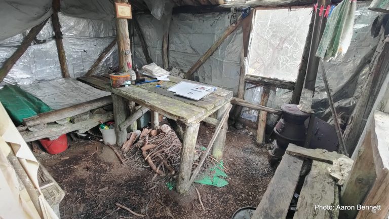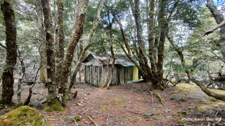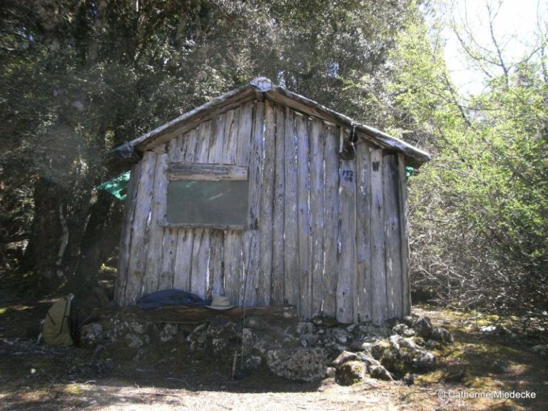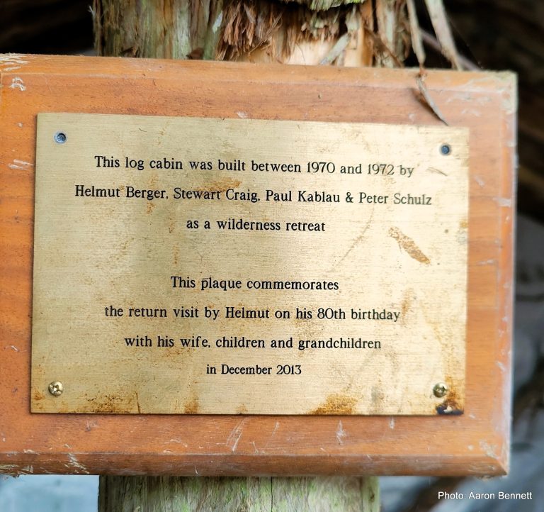 Lake Ina Hut is the end result of a dream held by four men with two things in common – they were all immigrants to Tasmania and they all loved the State’s mountain wilderness. Helmut Berger was from Vienna, Austria as was Peter Schulz. Paul Kablau was from Germany and Stewart Craig was Scottish. The foursome investigated various locations while bushwalking in the Central Plateau before choosing a beautiful area amongst myrtle and fagus beech on the northern end of Lake Ina as the ideal spot to build their wilderness hide-away. At that time the area was Crown Land, before becoming a National Park, and all that was required was for the men to pay a small fee once permission was granted and their dream was one step closer to becoming a reality. Work commenced in 1970 and it took two years of frequent weekend working bees during summer months and less frequent during the off seasons before it resembled a hut which could provide shelter. During the building period the men erected tents for shelter and accommodation. The hut was built primarily from celery top pine, with a dirt floor, and a row of stacked stones around the outside base. Timber was sourced from around the lake. No trees were cut down, the men using only fallen logs which they ferried to the building site by raft. All tools and sheets of roofing iron were carried in to the site by the men on their backs. It was no mean feat when you consider that the walk into the hut site, via Clarence Lagoon, would take the fit foursome between 3.5 to 5 hours after a road trip from Hobart which added another 3 hours to their overall journey. By 1980 the single roomed hut was fully completed with perspex windows and a pot bellied stove. The hut was fitted out with benches for seating, with another for sleeping and a central table. The walls were insulated and adorned with various tools, utensils and implements. Sheets of laser light allowed for natural lighting. With only a piece of canvas draped in the doorway, the hut was not vermin proof. In more recent times a solid, albeit removable door has been erected to keep the possums out. The four friends referred to it as “The Log Cabin” – today it is known as Lake Ina Hut. In the years after construction of the hut, family and close friends shared good times with Helmut, Peter, Paul and Stewart, even though its location, probably more because of its isolation than anything, remained a well kept secret. It must have been a bitter-sweet feeling for the four men when the area became a National Park with the hut now classified in the World Heritage Conservation Area – and although the hut was spared, the men were no longer able to regard their little log cabin as their own.